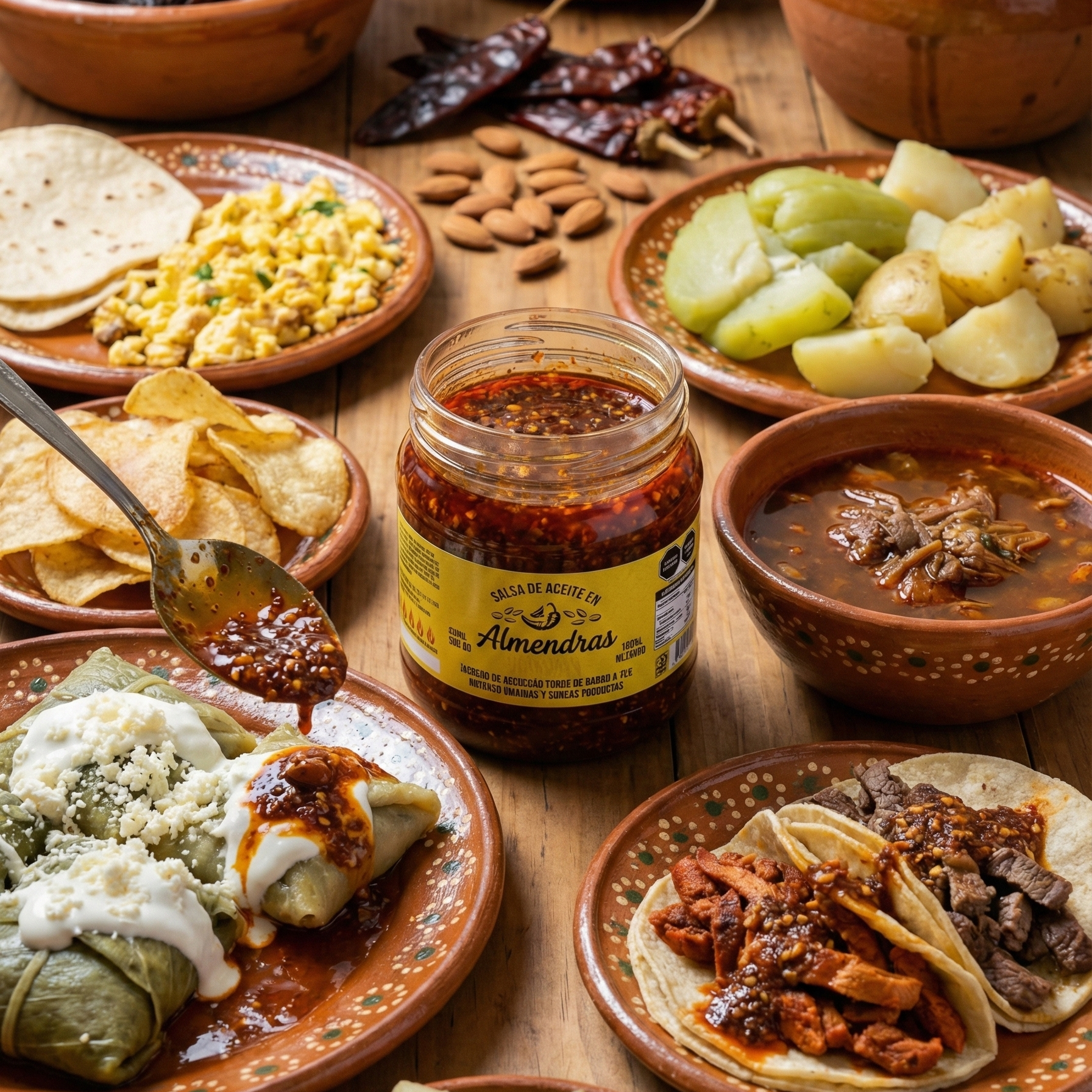 Esta salsa, mejor conocida como "chile de aceite" es para todos los paladares, su picor es muy moderado y su sabor queda bien con dulce y con salado. Usala en botanas, fruta, tacos, quesadillas... la verdad es que es difícil encontrar algo que no se lleve bien con ella.